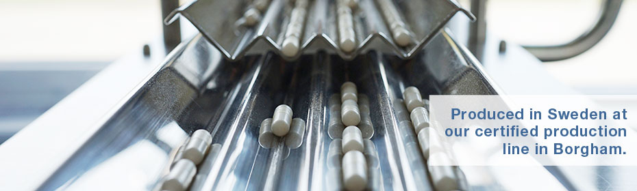 - Safe and clean supplement brand - Our facility in Borghamn, Sweden, is certified according to the criteria for a safe production of clean nutritional supplements.