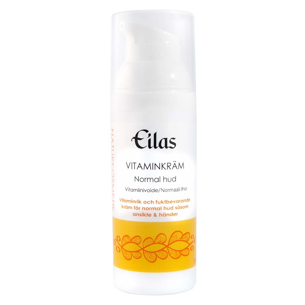 Eilas vitaminkräm för normal hud gör huden mjuk och smidig och skyddar mot uttorkning. Den är mindre fet än vitaminkrämen för torr hud.