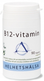 - B12 bidrar till normal energiomsättning, motverkar trötthet och utmattning och bidrar till immunsystemets normala funktion.