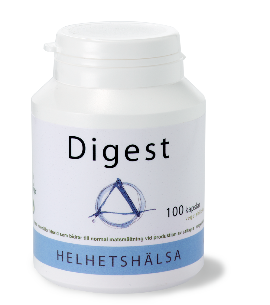Saltsyratillskott. Digest innehåller klorid som bidrar till normal matsmältning vid produktion av saltsyra i magsäcken.