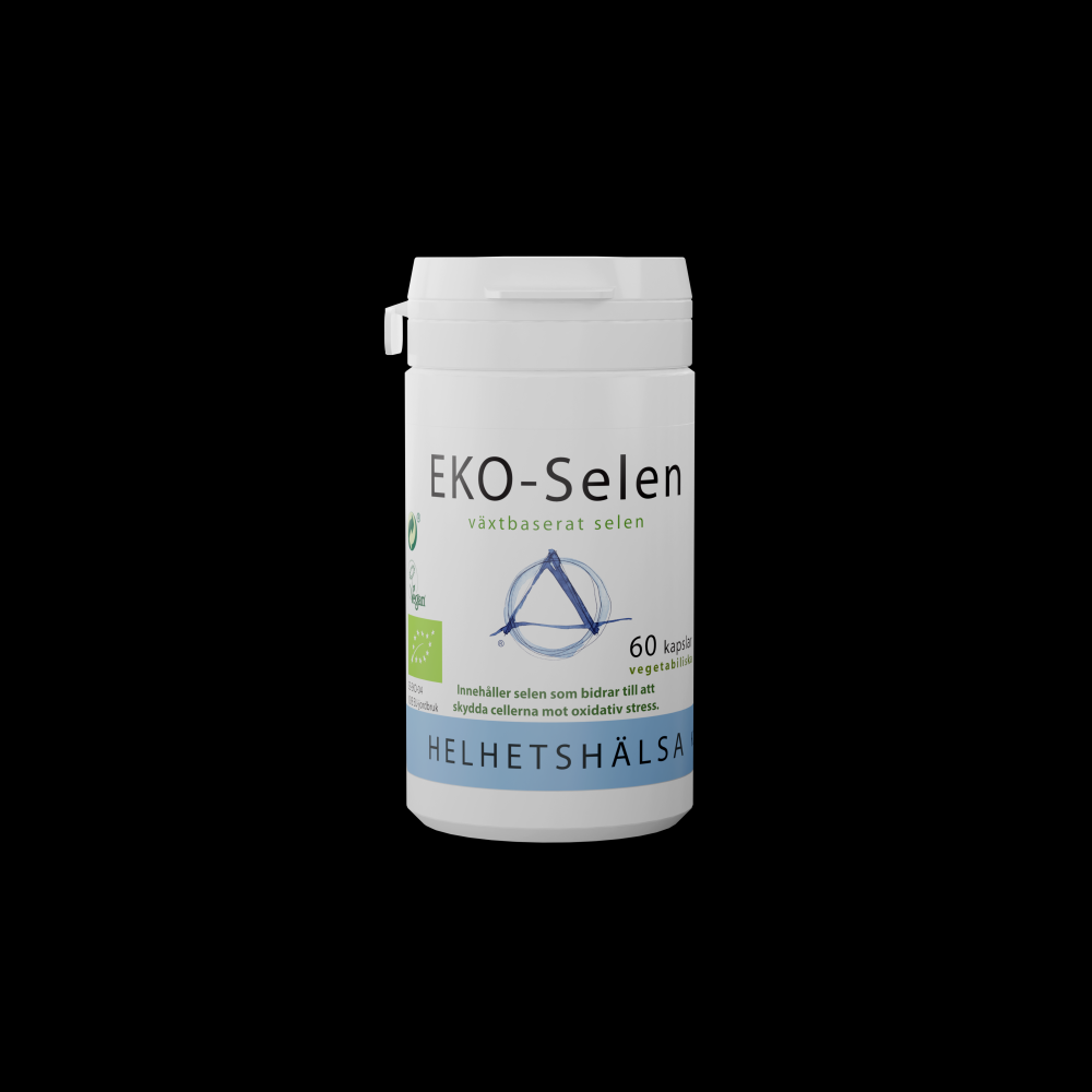 EKO-Selen är ett tillskott med selen från ekologiska växter: helig basilika och solrosfrö. Precis som selen i kosten har selenet i EKO-selen organisk form. Passar dig som äter mycket närproducerat och/eller mycket vego!