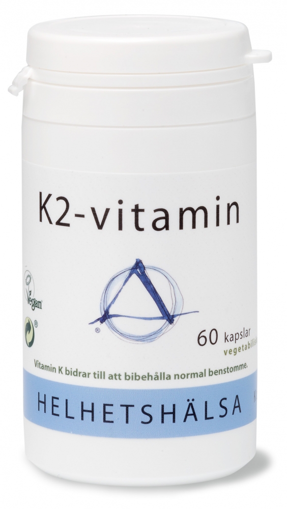 Helhetshälsa K2-Vitamin är vegetabiliskt och innehåller K2-vitamin i form av Menakinon 7.