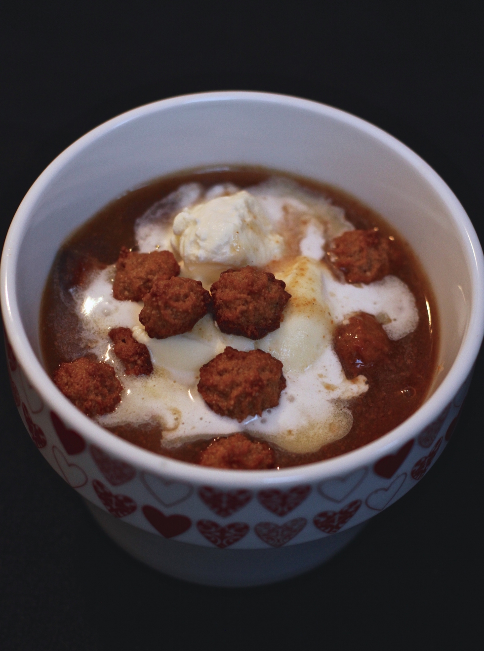 Häll vattnet i en kastrull. Blanda ihop strandnyponpulver, potatismjöl, vaniljpulver, sötning och salt och vispa ner blandningen i det kalla vattnet. Koka upp under omrörning och servera sedan varm eller kall med kokosgrädde och mandelbiskvier utan vitt socker.