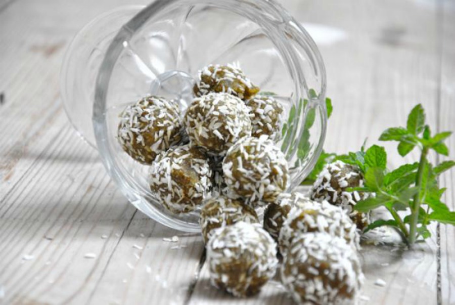 Blötlägg cashewnötterna. Mixa cashewnötterna tillsammans med russin/aprikoserna, tillsätt kokos, skalet från en ekologisk lime samt dess saft och Supergreens.